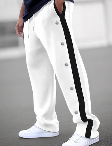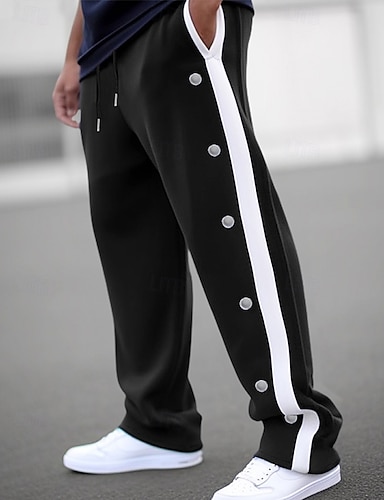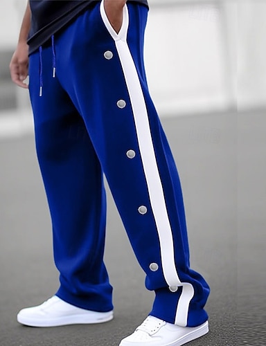 Homens Calças Esportivas Corredor Calças Com Cordão Cintura elástica Botão Lateral Bloco de cor Conforto Respirável Casual Diário Feriado Esportes Moda Preto Azul