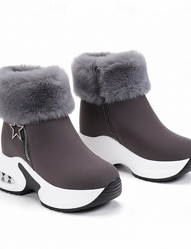 botas femininas de salto plataforma com punho felpudo, camurça marrom com zíper e fivela, botas de inverno quentes e aconchegantes para clima frio, passeios casuais e comemorações de feriados