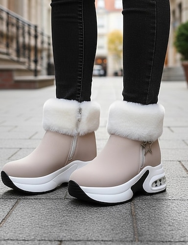 Botas de neve femininas de camurça sintética até o tornozelo – botas de inverno quentes com forro de pele e punho dobrável, calçados confortáveis e antiderrapantes para atividades ao ar livre