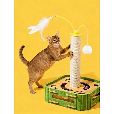 Brinquedo interativo para gatos, tipo dançarino, ideal para gatos de interior, com brinquedos que fazem barulho e feltro para arranhar.