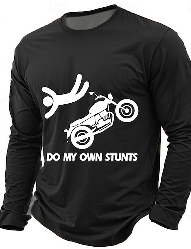 Camiseta Gráfica Masculina Engraçada de Motocicleta "Fazendo Minhas Próprias Acrobacias" Camisa de Manga Longa - Humor de Motociclista