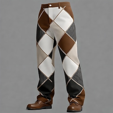 Homens Bloco de cor Retalhos Losango Calças Social Calças de Terno Cintura Média Casual Ao ar livre Dia a Dia Calça social com corte relaxado e frente lisa com bolsos laterais Primavera Outono