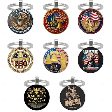 Conjunto de 8 chaveiros comemorativos dos 250 anos de liberdade dos EUA, em liga de zinco. &vidro cristal, história americana &símbolos patrióticos, bandeira dos EUA &Presente de lembrança do Dia da