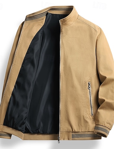 Homens Blusão Jaqueta casual Ao ar livre Férias Quente Zíper Bolsos Outono Inverno Tecido Moda Roupa de rua Colarinho Clerical Padrão Preto cáqui Verde Tropa Bege Casaco