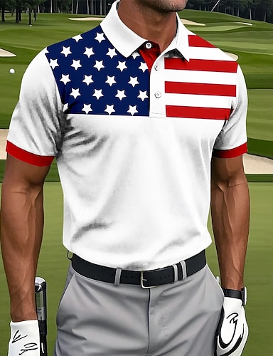 4 de julho de 2026 250º Dia da Independência Masculino American US Flag Pólo Manga Curta Aberto para a Lateral Casual Diário Casual Desportos e Ar livre Bolsos Botões Verão Rubi Vermelho Branco