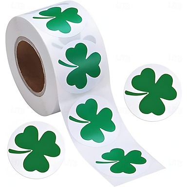 Adesivos de trevo para o Dia de São Patrício, 500 unidades por rolo. Adesivos em formato de trevo para decoração de festas e artesanato do Dia de São Patrício.
