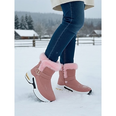 Botas de neve femininas rosa com punhos de pele sintética – botas de inverno modernas com sola acolchoada para maior conforto, calçado estiloso para dias de neve e diversão ao ar livre.