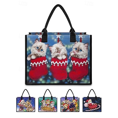 Bolsa de Natal feminina – com estampas festivas de gatos e meias de Natal vibrantes da Kayomi Harai, ideal para compras de Natal, presentes e celebrações de inverno.