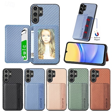 telefone Capinha Para Samsung Galaxy S26 Ultra S25 S24 S23 S22 Plus Ultra Capa traseira Com Suporte Magnética Suporte para carregamento sem fio Retro TPU Fibra de carbono PC