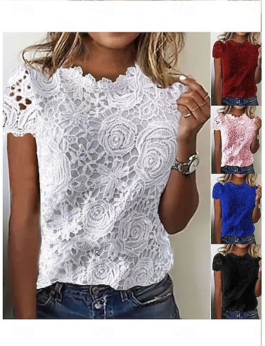 camisa feminina renda camisa túnica camisas blusa elegante férias senhoras cor sólida floral renda crochê manga longa regular tops camisa colarinho festa casual diário preto branco vinho verde menta