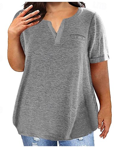 Mulheres Tops de verão Blusa Franzido Patchwork Bolsos Côr Sólida Tecido Elegante Vintage senhoras Manga Curta Decote V Tops regulares Diário Trabalho Feriado Preto Branco Roxo Verde Cinza Claro