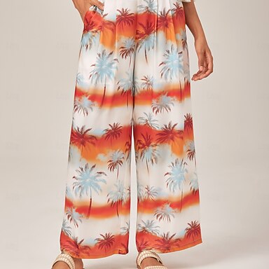 Mulheres Feminino camisa de botão Camisa casual Árvore Casual Mangas Divididas Laranja Em V Atado Botões Meia-Manga Elegante Férias Colarinho de Camisa Verão