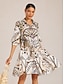 Mulheres encolhe os ombros Renda Ilusão Floral Elegante à moda Manga 3/4 Gola Boba Tops curtos Diário Convidado do casamento Roupas de férias Mink Verão Primavera Outono