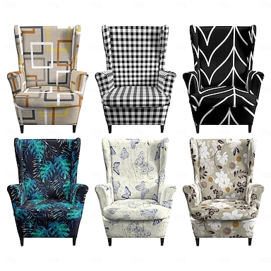 Capa para poltrona de orelhas com estampa floral, listrada e geométrica em poliéster, capa protetora dobrável moderna para cadeira, capa para assento de poltrona.