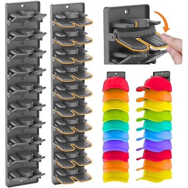 Conjunto de 2 organizadores para bonés de beisebol com presilhas de mola embutidas - suporte de parede para bonés de armário, organizador para porta/armário, cabide para bonés (adesivo forte)