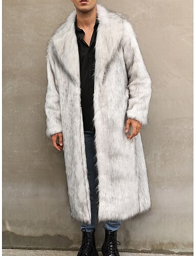 Homens Jaqueta de Inverno Casaco de pele falsa Férias Diário Térmico / Quente Tosão Outono Inverno Tecido Moda Roupa de rua Lapela Longo Preto Branco Amarelo Casaco