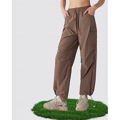 Mulheres Calça Cargo Calças de Trilha Calças de perna reta Verão Ao ar livre Normal Prova-de-Água Proteção Solar A Prova de Vento Secagem Rápida Calças Com Cordão Leve Preto Cáqui Campismo / Escursão