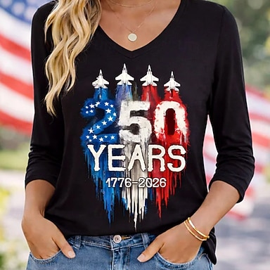 Camiseta Patriótica do Dia da Independência Americana 250ª Aniversário para Mulheres Gráfica com Bandeira Impressão com Letras Estilosa Clássica Casual de Manga Curta Crew Neck Tamanhos Regulares
