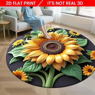 Tapete de área com estampa plana 2D de girassóis, série girassol, em veludo cristal, para sala de estar, sofá, mesa de centro, quarto, cabeceira, closet, macio e decorativo.