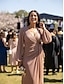 Duas Peças Até o Tornozelo Vestido Para Mãe dos Noivos Manga 3/4 Decote V Simples Minimalista Casual Formal Convidado do casamento Tapioca com Faixa / Fita