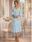 Linha A Vestidos Longuette Vestido de festa Vestido Coquetel Vestido de convidada de casamento Vestido Para Mãe dos Noivos Manga Longa Decote V Elegante Vintage Simples Formal Convidado do casamento