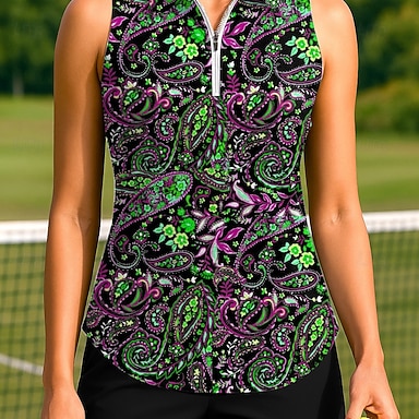 Mulheres Estampado Cashemere Multi-Côr Tops Camisa Esportiva Camisa polo de caminhada Camisa de tênis Sem Manga Zíper UPF50+ Resistente a UV Elasticidade Alta Pavio Humido Respirável Tênis Pickleball