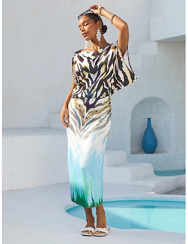 vestido de férias em cetim sedoso com estampa de tigre degradê