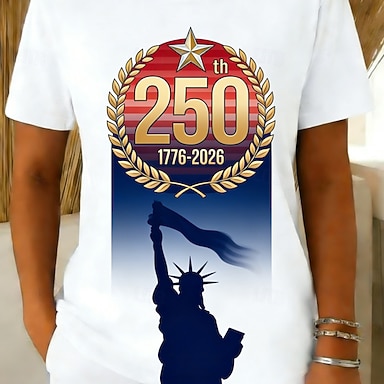 4 de julho de 2026 250º dia da memória Camiseta patriótica masculina 3D impressão veterano com gola redonda de manga curta Rua de esportes ao ar livre