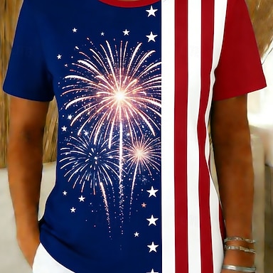 Dia da Independência Americana Mulheres Camiseta T-shirt Imprimir Gráfico Bandeira americana à moda Clássico Casual Manga Curta Gola Redonda Tops regulares Diário Esportes Para Noite Azul Verão