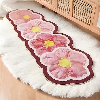 Tapete corredor com estampa floral irregular, macio e felpudo, ideal para banheiro, absorvente e com textura de lã sintética, perfeito para decorar o chão do quarto ou ao lado da cama. Tapete