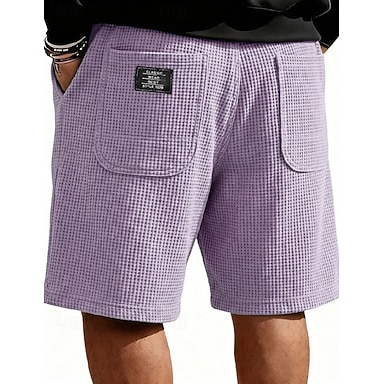 Homens Calções Waffle Calção Shorts casuais Shorts texturizados Bolsos Cintura elástica Textura Tecido Cor Única Conforto Respirável Acima do Joelho Casual Ao ar livre Praia Férias Moda Preto Branco