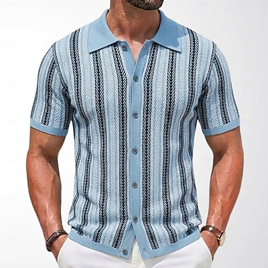 Homens Camisa de golfe Conjunto Polo O negócio Casual Lapela Manga Curta Moda Tiras verticais Com Transparência Verão Damasco Camisa de golfe