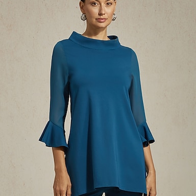 Calça boca de sino feminina azul escuro butterflex modal painéis de chiffon transparente perna larga cintura elástica elegante confortável dia a dia trabalho férias primavera outono verão