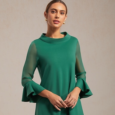 Calças femininas de tecido elástico, chiffon, painéis transparentes, perna larga, cintura elástica, elegante, confortável, trabalho diário, outono