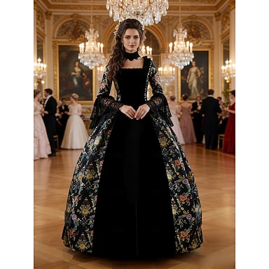 Vintage Rococó Renascentista Maxi Vestidos Normal Julieta Cinderela Flor Princesa Decote Quadrado Fantasia Todos Real Dia Das Bruxas Carnaval Baile de Máscaras Espetáculo Festa dia das Bruxas Adulto