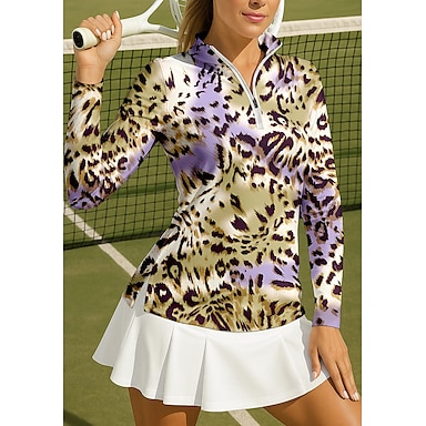 Mulheres Leopardo Camisa Esportiva Camisa polo de caminhada Camisa de tênis Camiseta de tênis Manga Longa Zíper Floral UPF50+ Resistente a UV Elasticidade Alta Pavio Humido Respirável Voleibal Tênis