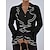 Mulheres Saia camisa de botão Blusa Paetês Botões Elegante à moda Retro Vintage Manga Longa Colarinho de Camisa Tops regulares Diário Para Noite Trajes de festa Branco Primavera Outono