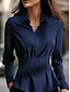 Mulheres Blusa de cetim Saia Camisas de trabalho camisa de botão Côr Sólida Elegante Moda à moda Manga Longa Aberto para a Lateral Colarinho de Camisa Tops regulares Trabalho Traje de festa para