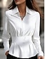 Mulheres Saia Blusa Frufru Botões Côr Sólida Elegante à moda Básico Manga Longa Colarinho de Camisa Tops regulares Diário Escritório Trabalho Branco Primavera Outono