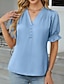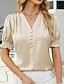 Mulheres Camisa Social Blusa de cetim Saia Franzido Frufru Côr Sólida Tecido Elegante Moda Casual Manga Curta Decote V Tops regulares Diário Streetwear Escritório Azul Verão Primavera Outono