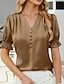 Mulheres Blusa de cetim Saia Blusa Côr Sólida Elegante Moda Casual Manga Curta Aberto para a Lateral Tops regulares Diário Escritório Trabalho Azul Preto Branco Amarelo Cinzento Verão Primavera