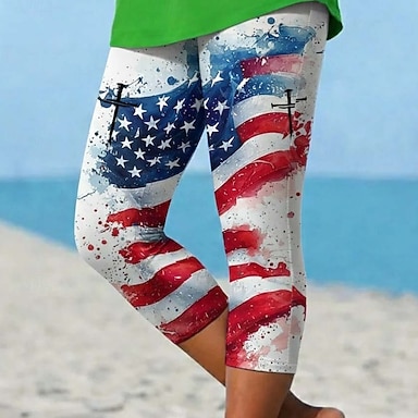 Dia da Independência Americana Mulheres Camiseta T-shirt Imprimir Gráfico Bandeira americana à moda Clássico Casual Manga Longa Decote V Tops regulares Diário Para Noite Final de semana Azul Azul