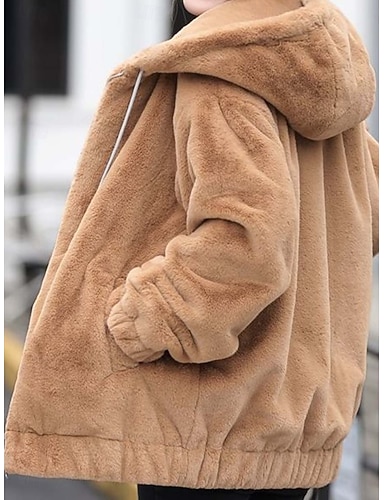 Mulheres Casaco de inverno Casaco de lã Jaqueta sherpa Manter Quente Confortável Bolsos Elegante Estilo bonito Diário Casual Côr Sólida Escola Presentes de Natal Férias Casa Padrão Com Capuz Ajuste
