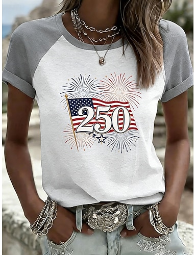 Dia da Independência Aniversário Americano Camiseta Patriótica Feminina Gráfica Bandeira Vintage Estilosa Casual Manga Curta Gola Redonda Tops Regulares Diário Impressão Branco Vermelho Bege Verão
