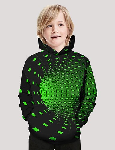 Para Meninos 3D Gráfico Geométrica Moletom Pullover Manga Longa Impressão 3D Verão Primavera Esportes Moda Roupa de rua Infantil 4-12 anos Com Capuz Casual Diário Ao ar livre Normal