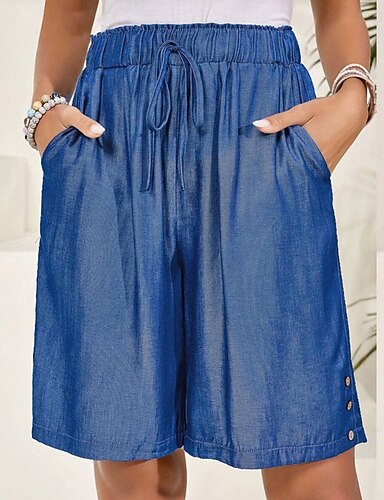 Mulheres Calção Shorts de verão Bermudas Shorts de praia Férias Moda Casual Diário Comprimento do joelho Cintura Alta Com Cordão Bolsos Cintura elástica Conforto Secagem Rápida Macio Micro-Elástica