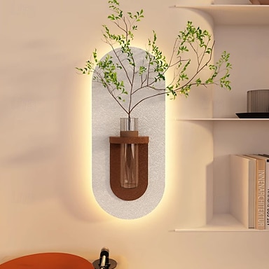 Tudo pendurado em vaso de vidro, arte de parede em arenito com luz LED, decoração de planta de parede para sala de estar, adequada para quarto, escritório, hotel