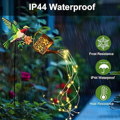 1 peça de luminária solar externa em formato de beija-flor, feita de metal oco, com efeito cascata - à prova d'água IP44, ideal para jardim, pátio, gramado, caminho e paisagismo. Luminária decorativa
