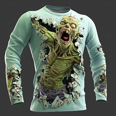 Homens 3D impressão Zumbis 3D Camiseta Manga Curta Camiseta Impressão 3D Gola Redonda Camisa Exagerado Designer Terror Festa Rua Feriado Azul Claro Verde 1# Verde 2# Verão Primavera Todas as Estações