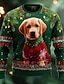Natal Homens Cachorro Moletom Legal Festa 3D Manga Longa Gola Redonda Férias Festa Presente Verde 2# Verde 3# Verde 4# Verde Crewneck 3D Todas as Estações Designer S M L XL XXL XXXL